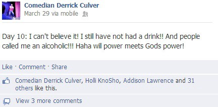 Social accountability can be a great motivator; if you are trying to break a habit it may be a good idea to post a daily count up on social media: Day 17 without Smoking, Day 22 Sober - you get the idea. Each day your friends or followers will (hopefully) applaud your self-control. It also lets them know not to invite you out for a night of debauchery or to take a smoke break.
