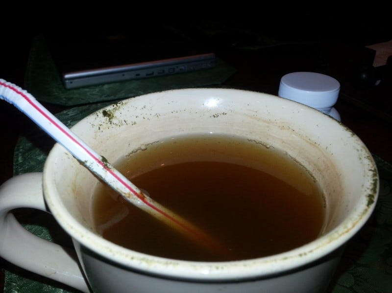 Also, you always need to brush your teeth after using Kratom, so it's not like Phenibut or L-Theanine that you can let dissolve in a glass of water that you drink leisurely while you are reading before bed and then just leave the glass on the nightstand and drift off to sleep. You need to get up out of bed, go to the bathroom, brush your teeth, and then go to the kitchen and wash your big ass mug.