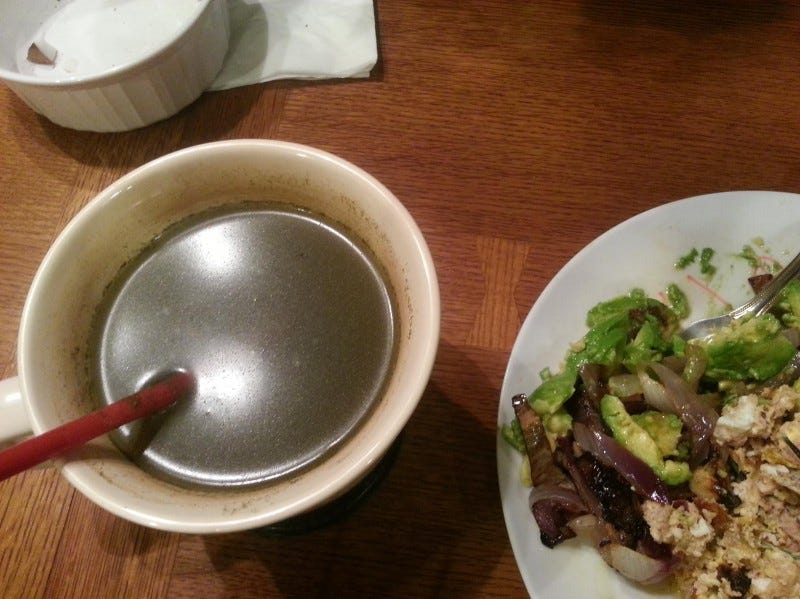 It's kind of a pain to consume or 'burn' - the traditional ways of consuming Kratom are to eat the leaves, smoke it, or drink it as tea. So the first couple of times I measured it out with my digital scale and then dumped it in this big-ass coffee mug I have and boiled it in water. It would have been nice for Island Lion Herbals to include some little measuring spoons, but I already have a bunch from the other Nootropics I do. Now, as you can see, Kratom is this fine, green powder that is easy to make a mess with! I was constantly cleaning it off my microwave, kitchen counters, digital scale, and my big ass mug!