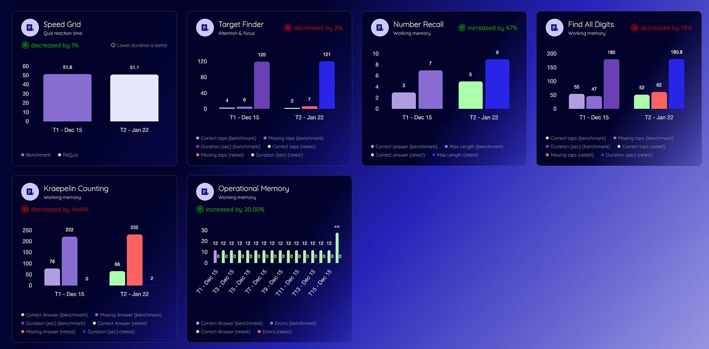 Igniton’s cognitive assessment tests - Use this before and after 30 days of using Igniton stacks. Impressively, I had an average uptick of 29% in my working memory capacity!